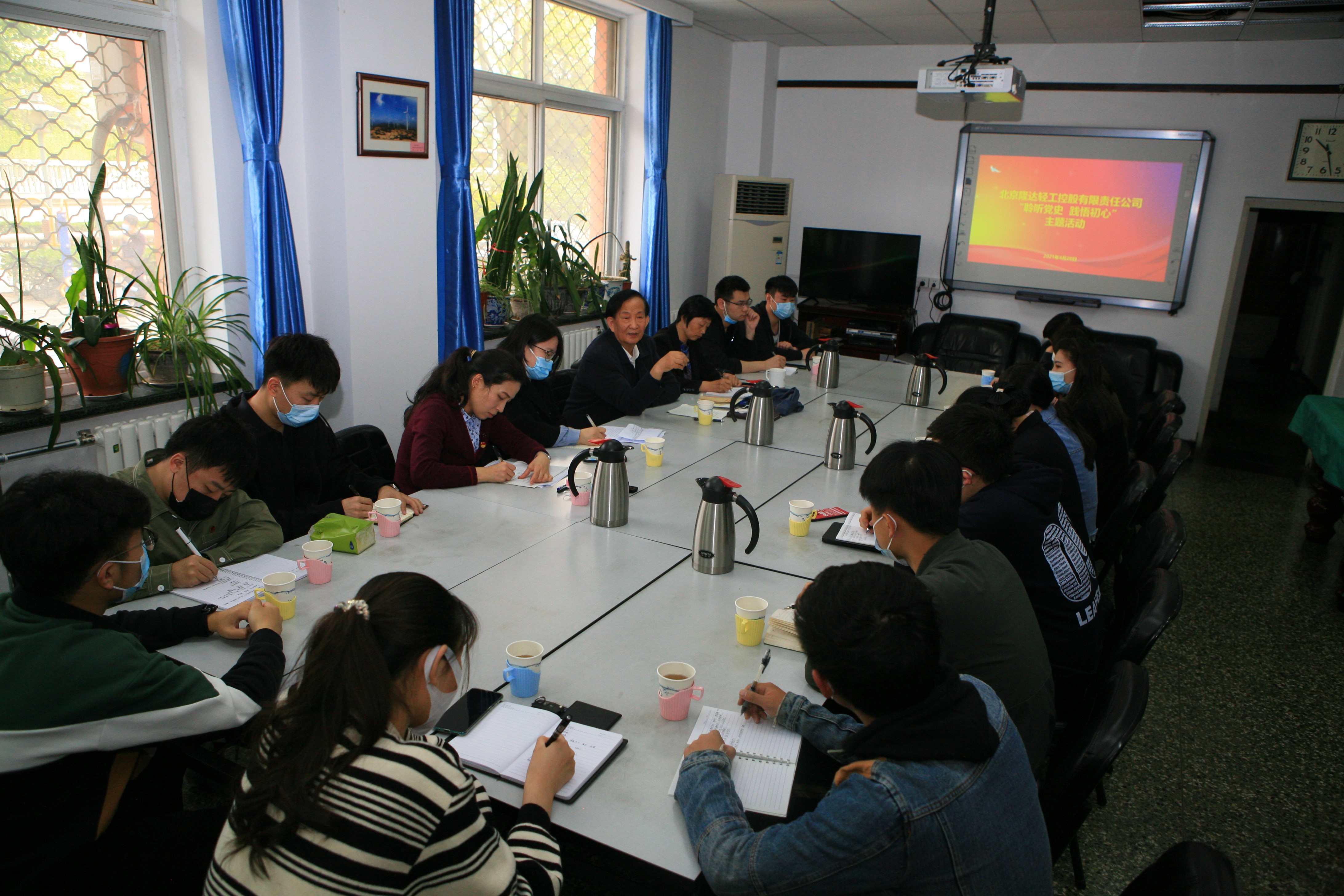 隆达公司团员青年代表在二轻老干部活动站听隆达公司原党委书记、董事长邢德海讲党史、企业奋斗史。